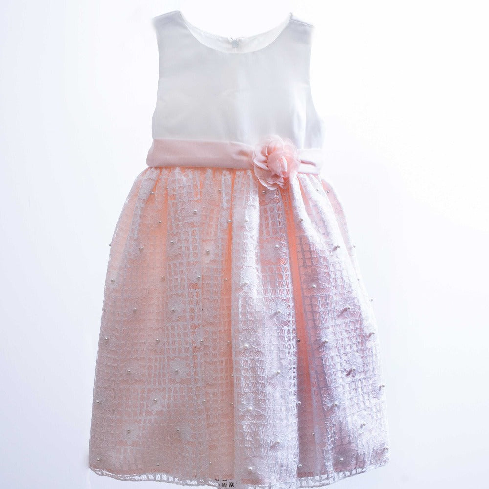 Une Robe de couleur Ivoire/rose avec des perles blanches