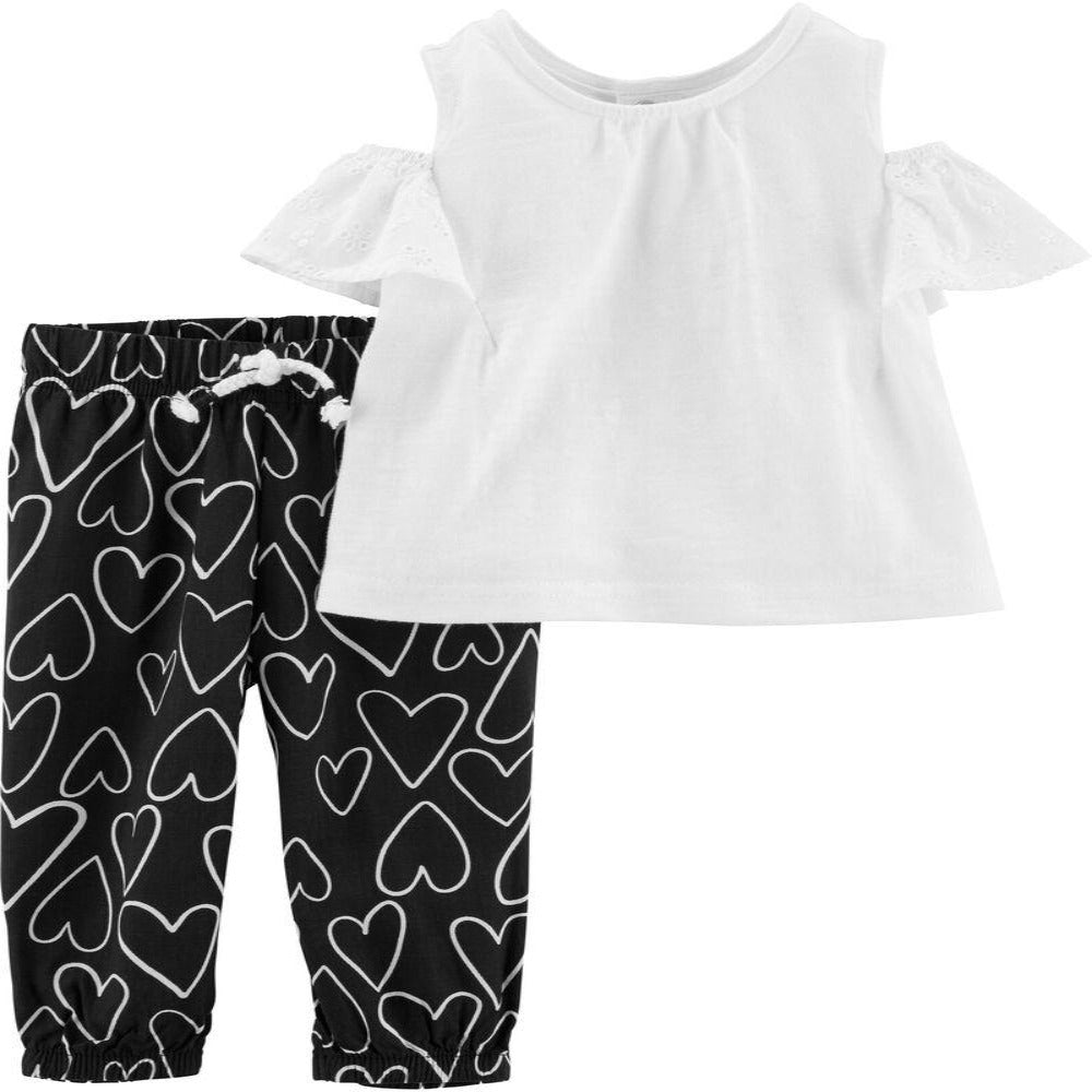 2 Pieces Ensemble, 1 pantalon noir en coeur et un top à decouvert blanc