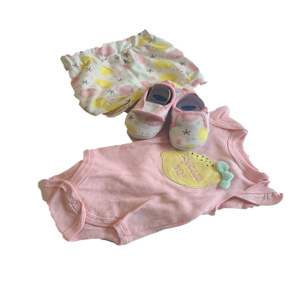 3 pieces Ensemble. 1 maillot de corps rose, 1 culotte multicolor qui concorde avec sa paire de chaussure (1)
